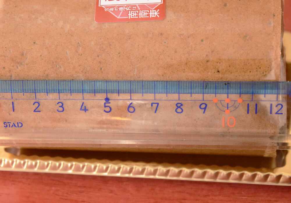 横の長さは約12cm。我が家では4等分にして家族みんなで分け合って食べました。4人分としてちょうどよいサイズ感です。