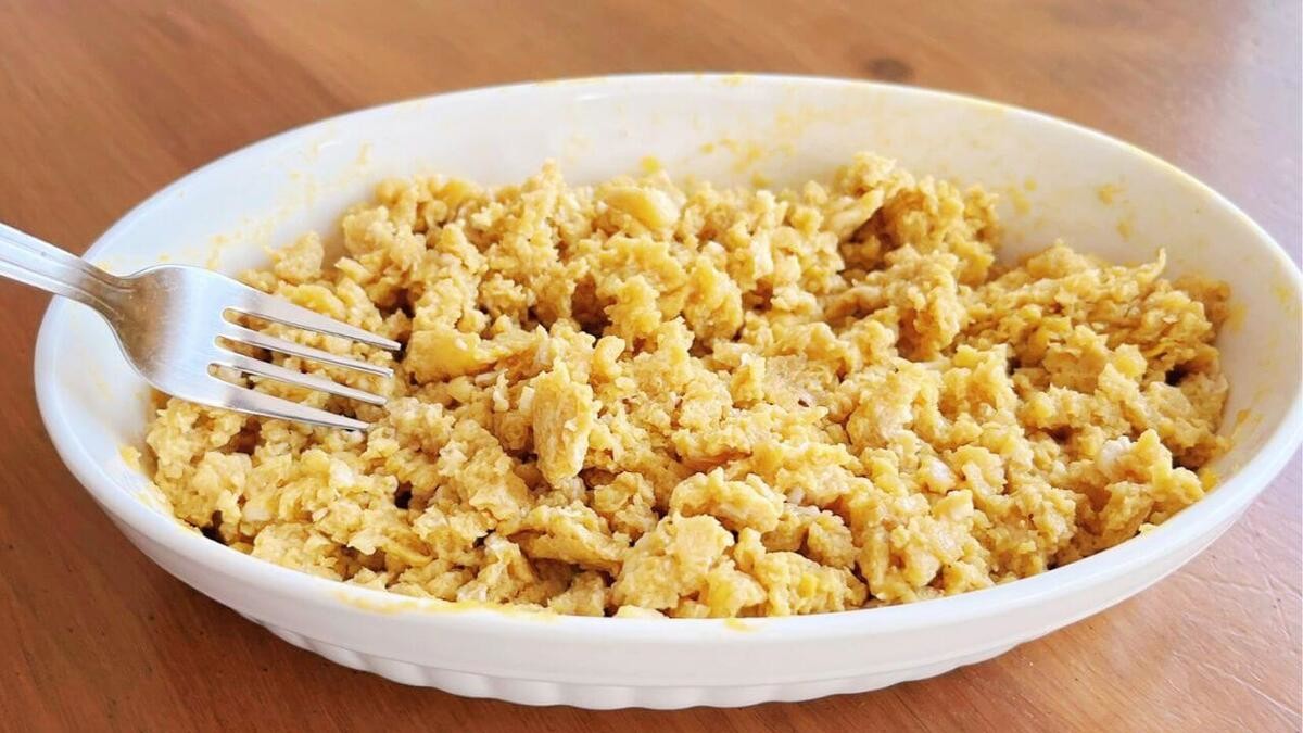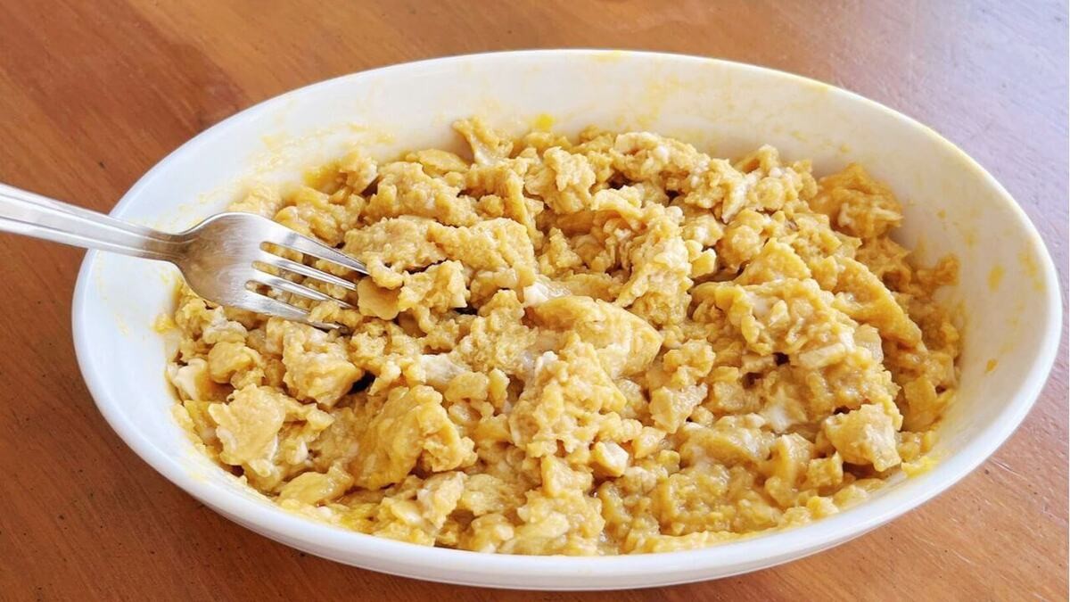 最後に、お好みの細かさになるように卵をほぐせば……!