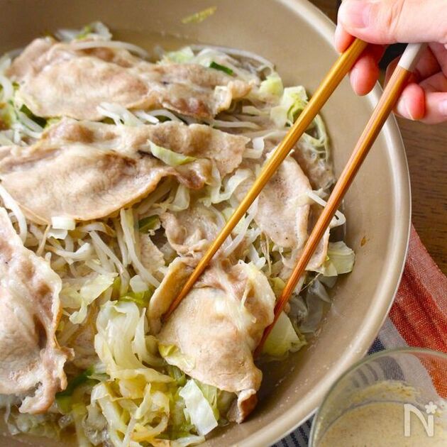 冬キャベツともやしをたっぷり使った、お手軽なフライパン蒸ししゃぶです。しゃぶしゃぶ用の豚肉は柔らかいので安さを感じさせず、神コスパ野菜でかさ増ししてしっかり節約!ごちそう感も味も妥協しない一品です。