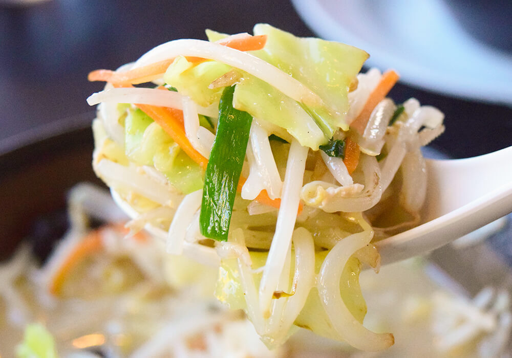 野菜は高温の鉄板で炒めたような香ばしさがあり、シャキシャキとした食感が楽しめます。野菜だけでもとてもおいしいですね。