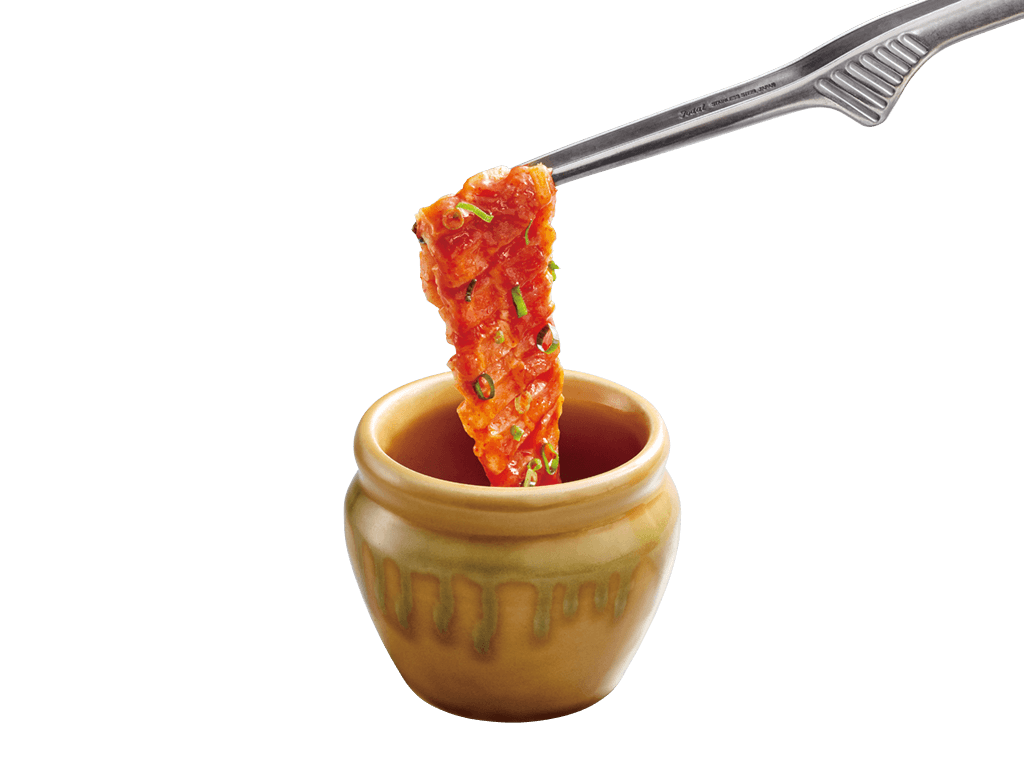 オリジナルハイサイソースで食べる 壺漬けすだれ豚バラカルビ(590円/税込649円)