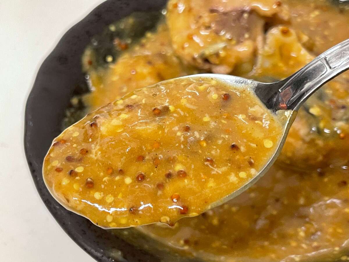 ひと口食べると、粒マスタードのプチプチっとした食感と、さわやかな酸味がまず印象に残ります。