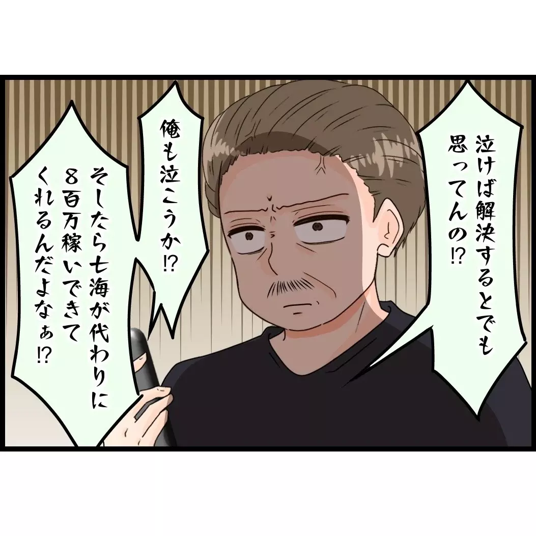 そこでお父さんが切り札を出します。これまで七海さんが密かに録音してきた音声を、その場で公開。やった!待ってました。