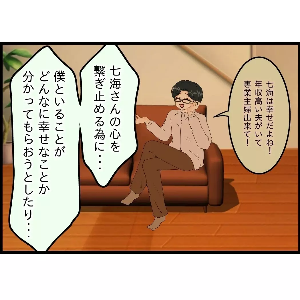 夫・マコトから精神的・肉体的DVを受けていた七海は、ついに家族にヘルプを出すことに成功。