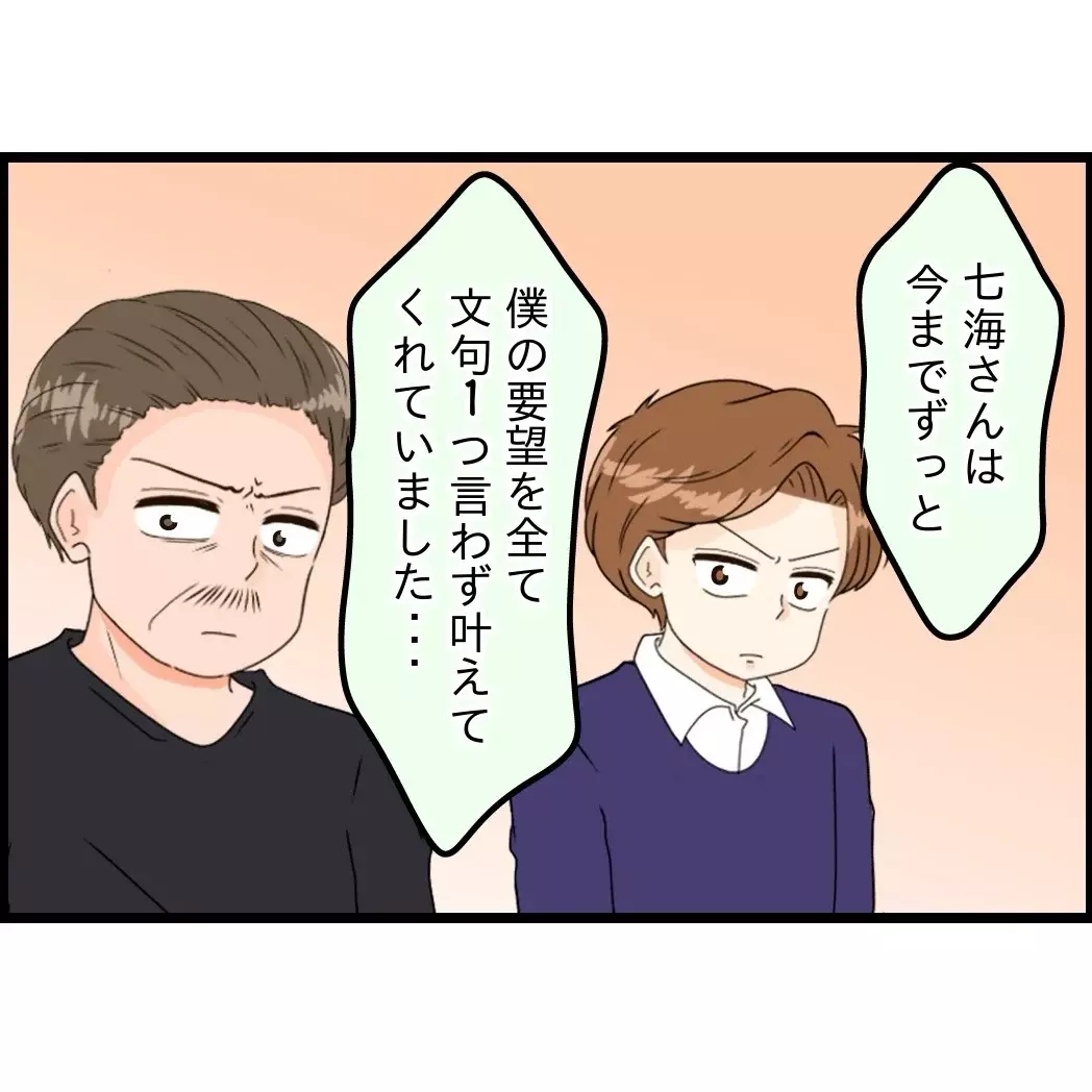 きちんと責任を取ってもらうため、七海のお父さんはマコトの会社で働くエリート先輩夫婦を呼び、話し合いの場を設けました。