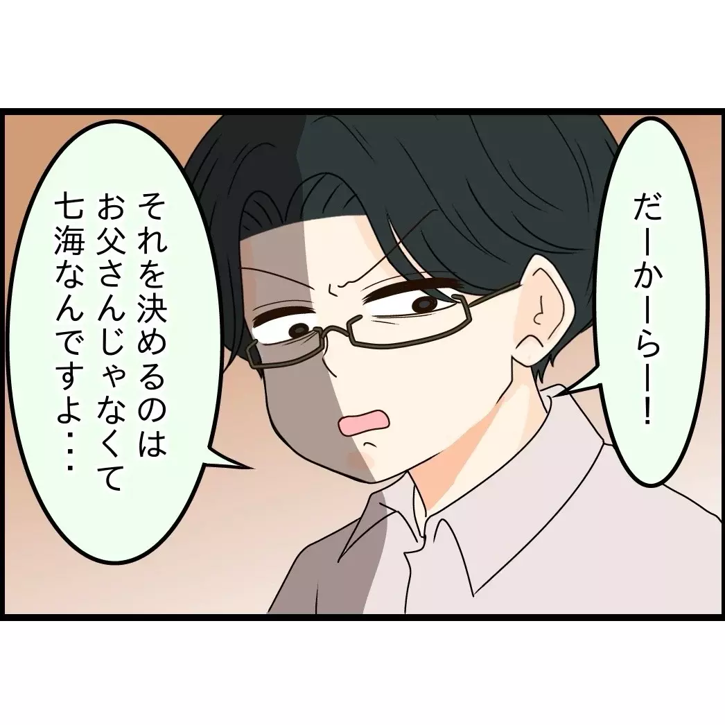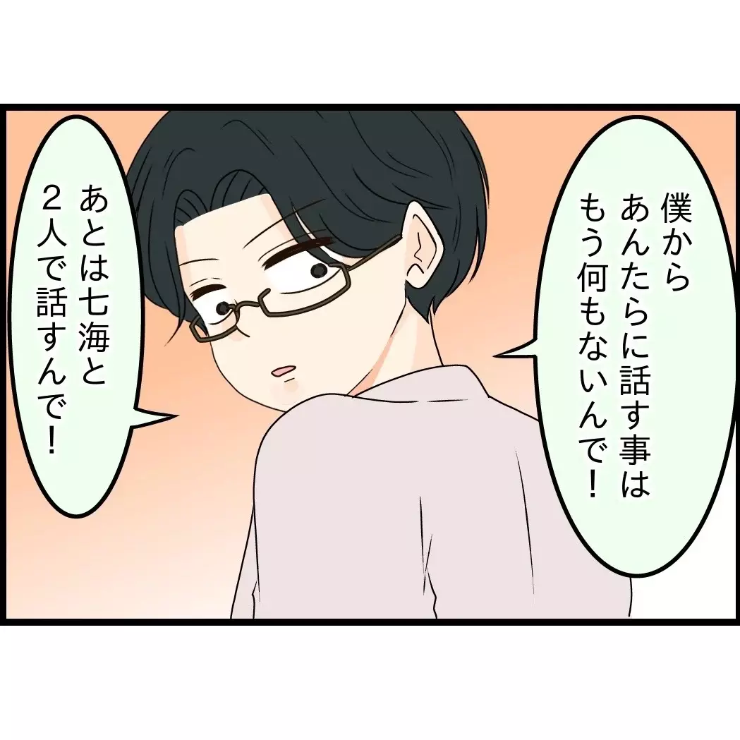 マコトと七海さんを結びつけた職場の先輩の立ち会いのもと、マコトとの話し合いという名の全面対決にのぞんだエースくんとお父さん。最初はしらばっくれていたマコトでしたが、ボイスレコーダーが動かぬ証拠となり、先輩の信頼も失ってしまいました。