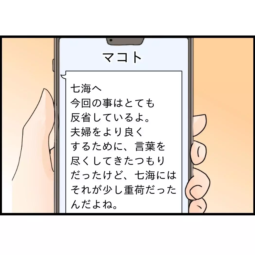 家族で事の顛末を話し合っているところに、マコトから“反省したフリ”メールが!お願い、七海さん、まさかもう騙されないよね!?
