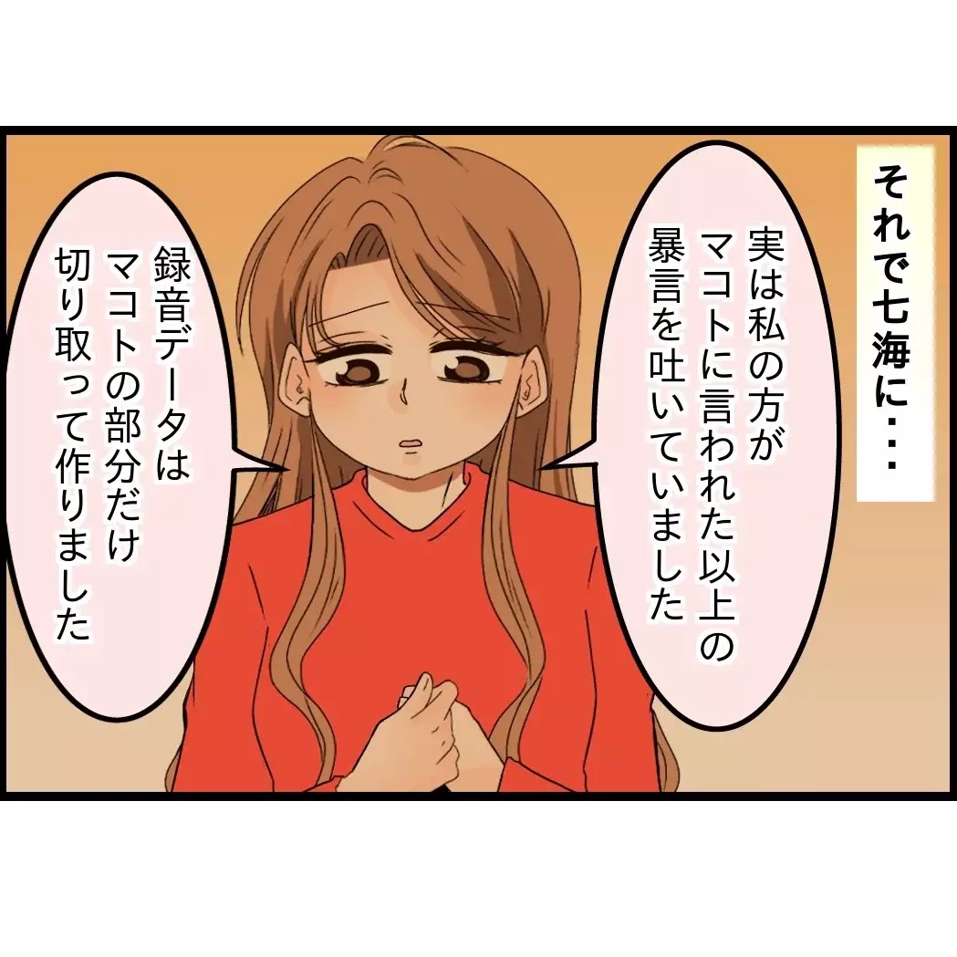 出世頭である先輩にいい顔したいマコトは当初涙を流して反省したフリを熱演。ですが、七海さんのお父さんや先輩にウソを看破された途端に逆ギレ!!!