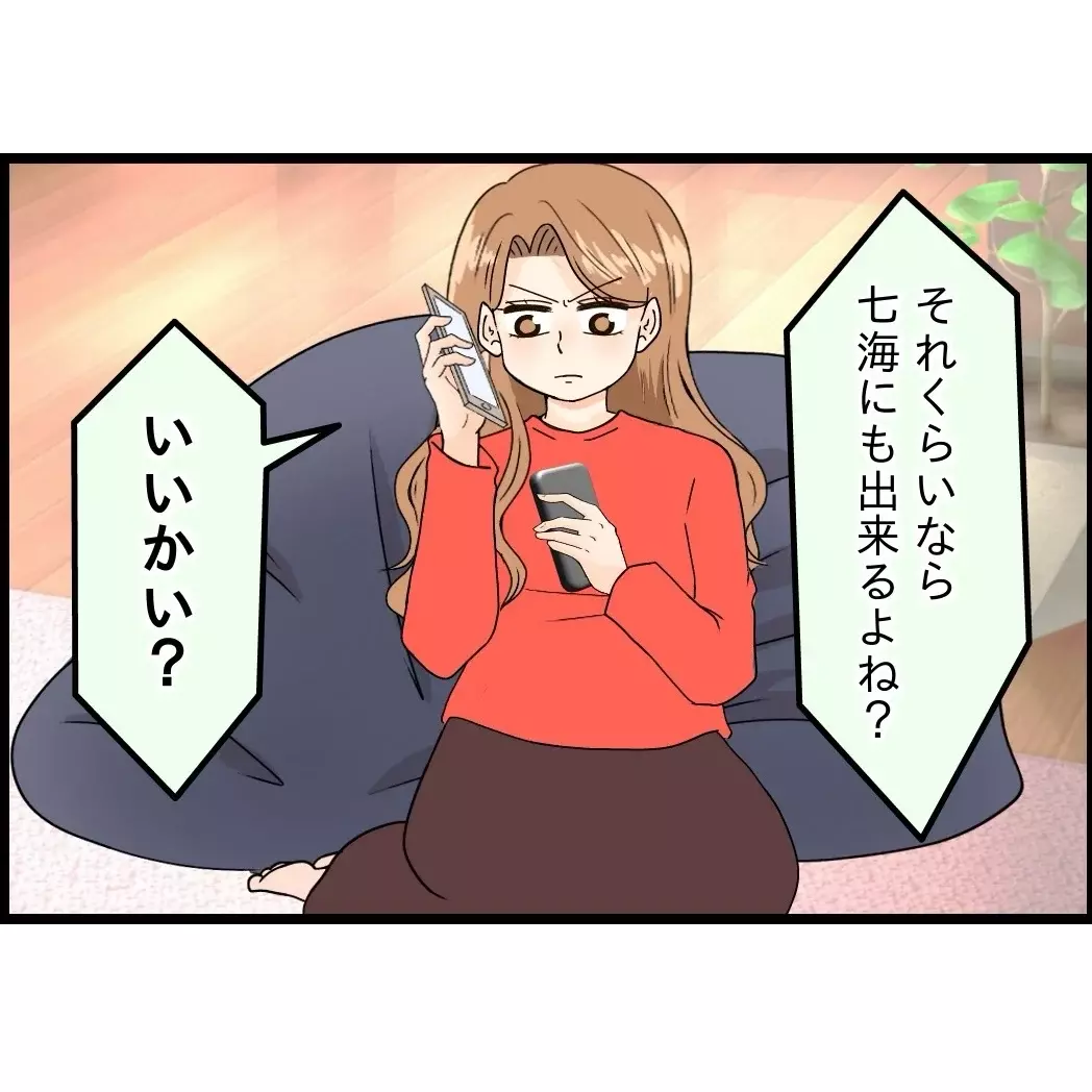 限界を感じて家族に助けを求めた七海さんは、実家でみんなに守られながら過ごしていましたが……メッセージの返信がないことにいら立ったマコトは、ついに七海さんへ電話をかけます。
