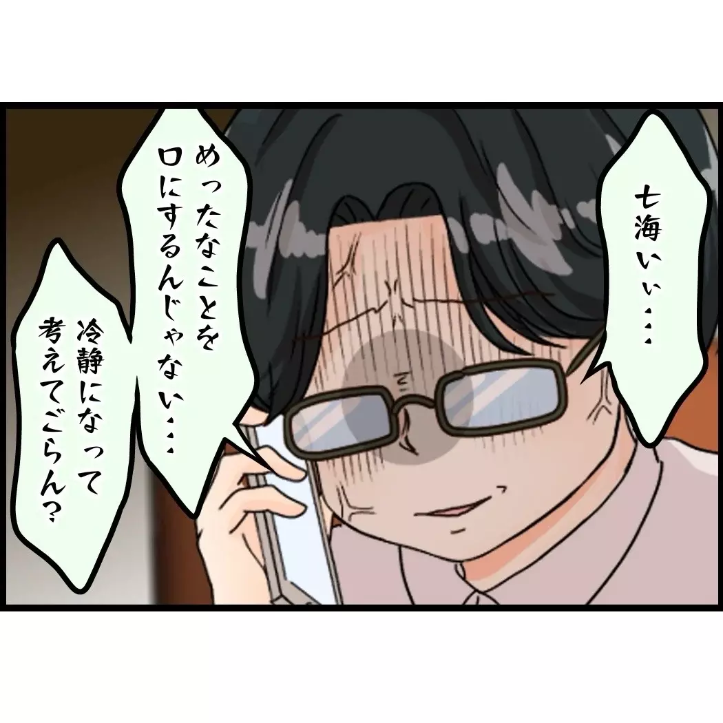 自分こそがすべての元凶であるにもかかわらず、七海さんに濡れ衣を着せて優位に立ち続けようとするマコト。どうにか戻ってこさせようとメッセージを送りますが、すべて無視されます。