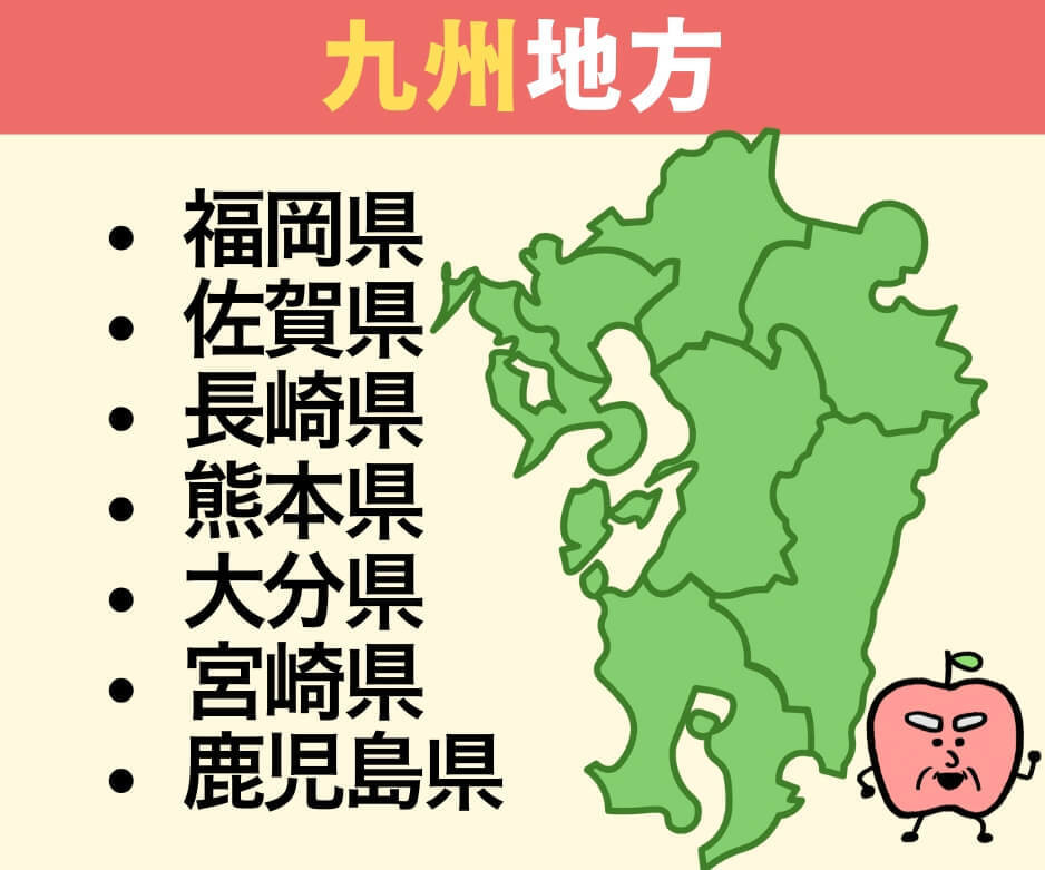 南の雄「九州地方」は7県(福岡、佐賀、長崎、熊本、大分、宮崎、鹿児島 ※沖縄を除く)。