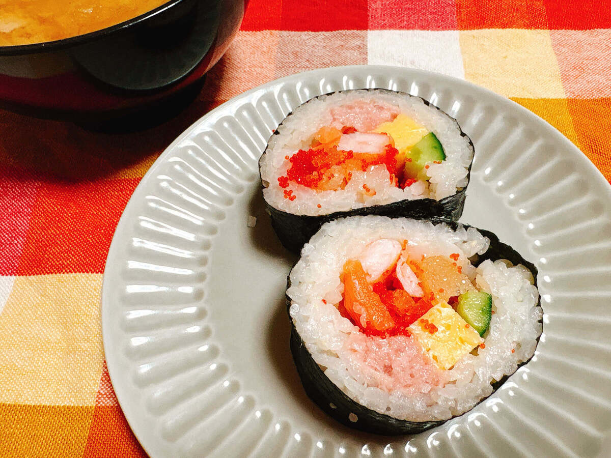 さすがに極太海鮮太巻きと比べると、多少具材がさびしく見えるかも。