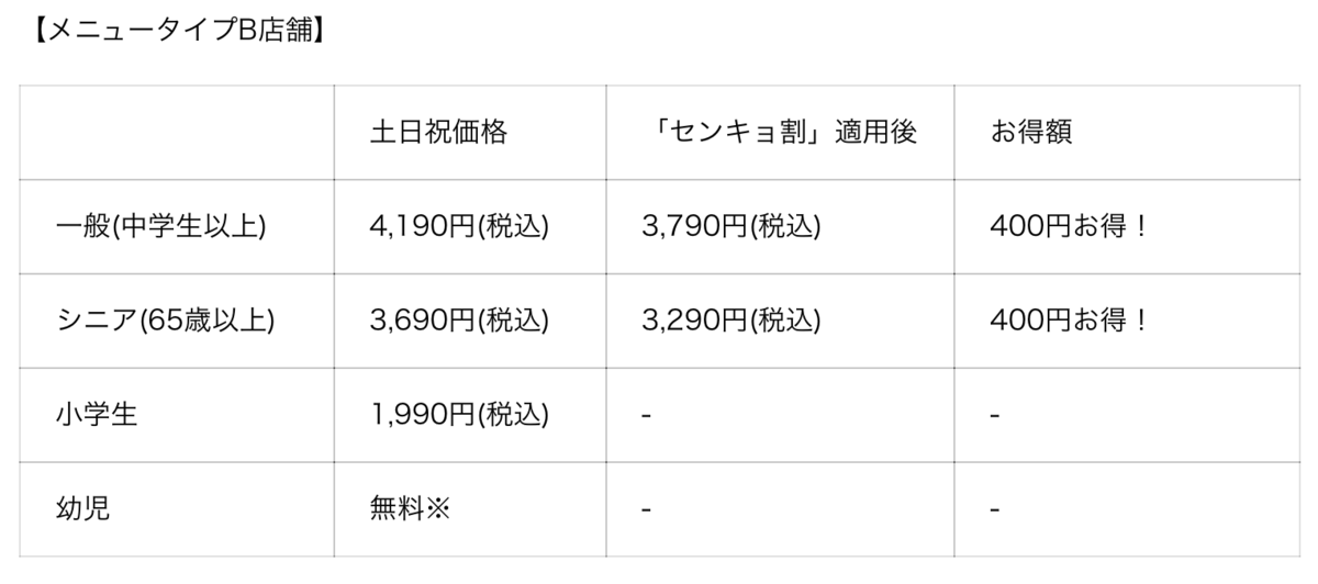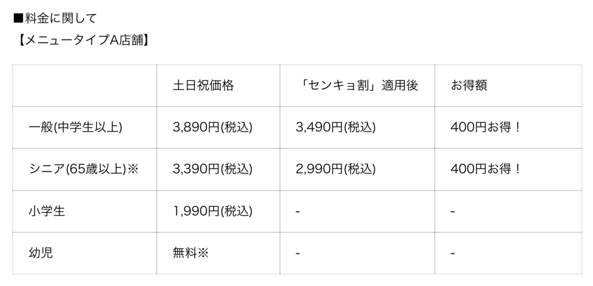 ※センキョ割は平日学割との併用不可となります。