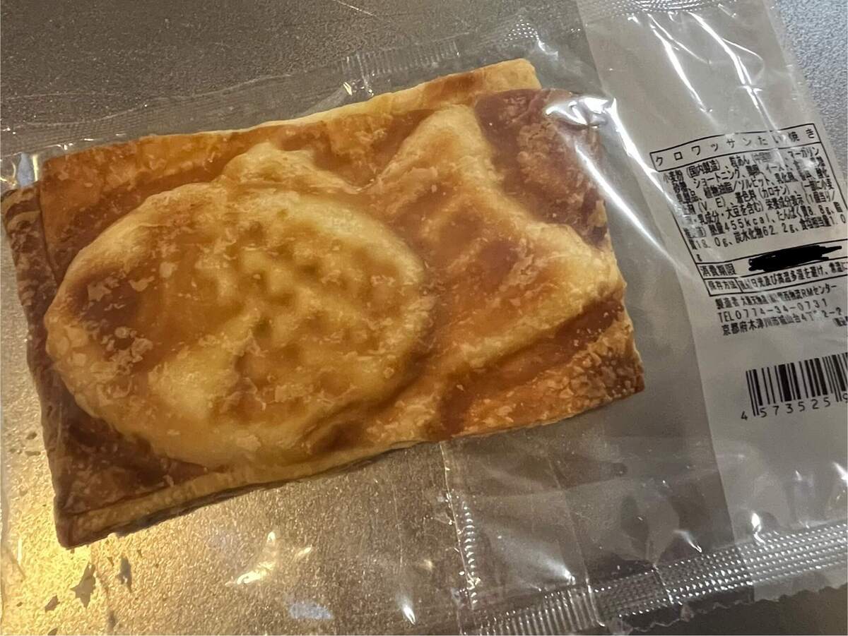 クロワッサンというよりも、たい焼きの生地がサクサクのパイ生地になっています。たい焼きの形で中にはあんこが入っています。