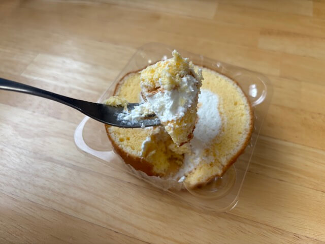 スポンジ生地はふわっふわで、クリームは甘さ控えめ♪エコ活商品だとコスパよしで2〜3個は食べられちゃいそうです!