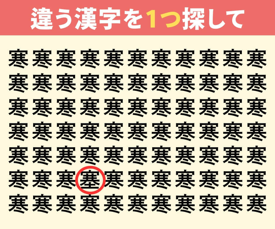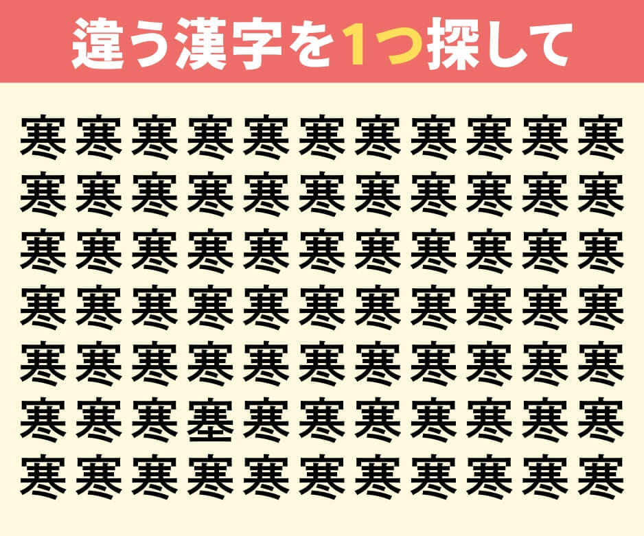 「5分かけてもわからない…」【脳年齢ヤバい!?】「寒」の漢字の中に隠れた1文字を見つけて!