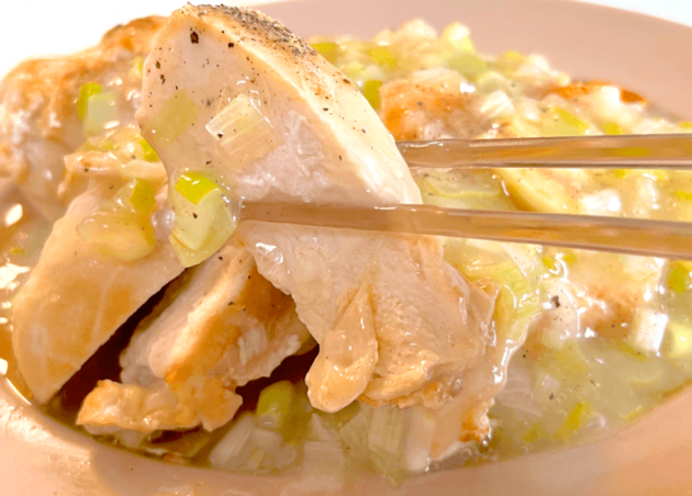 そしてねぎ塩レモンソースは片栗粉を入れたおかげでとろみがついており、鶏むね肉によく絡んでくれるので、口に入れたときによりジューシーに感じさせてくれるんです。