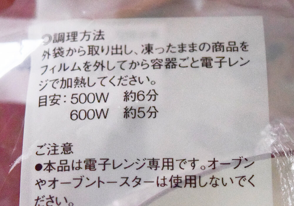 調理方法は電子レンジで温めるだけと非常にシンプル。味の評価とは別に、調理工程が簡単な点は素直に好印象で、忙しい日や軽く済ませたい場面では重宝しそうです。