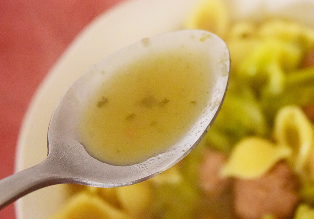 香味野菜やハーブの風味はしっかり感じられるものの、全体として味は薄く、コクが物足りません。塩味は確かに抑えられ、食べやすくなった印象はありますが、それでもパンチ不足は否めません。