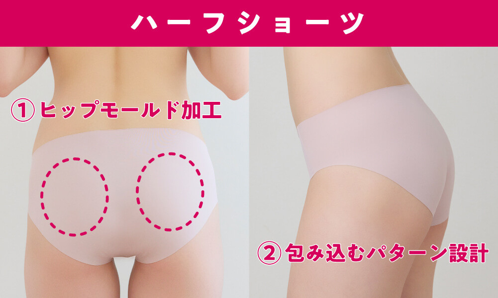 ヒップの丸みに沿った立体的な成型で、ズレにくく、ラインも出にくいため、無理なく自然なシルエットに。