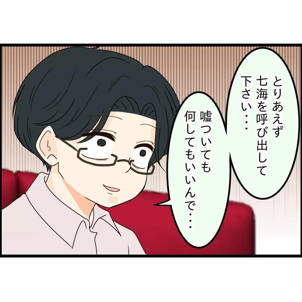 マコトの態度に不安を覚えた弁護士さんは、七海さん側の弁護士に電話をかけ、何やら話したようですが……なんだか嫌な予感がするのは、漫画担当だけでしょうか。最後登場した七海さんは大丈夫なのでしょうか。