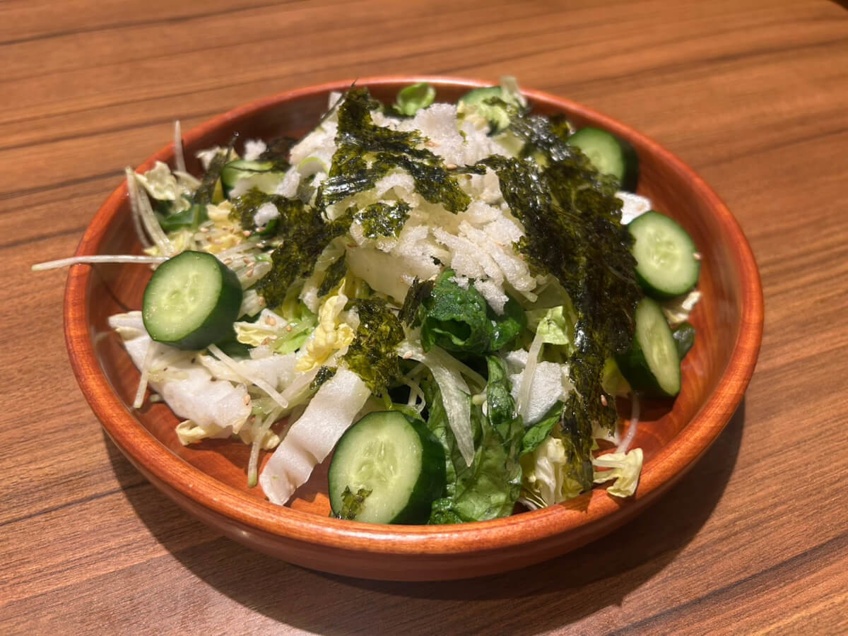 テーブルに届いた瞬間、ごま油とネギ塩だれの香ばしい香りが食欲をそそります。さっそく食べてみると、パリパリ、サクサク、シャキシャキといろいろな食感があります。