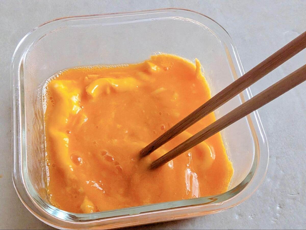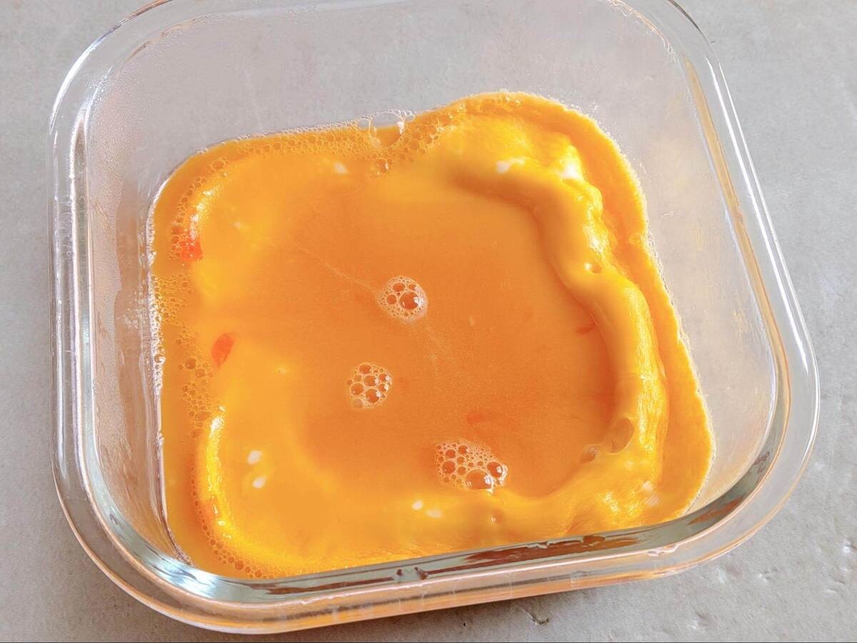 ※卵をそのままの状態で電子レンジ加熱すると爆発する恐れがあります。必ずよく溶きほぐしてください。