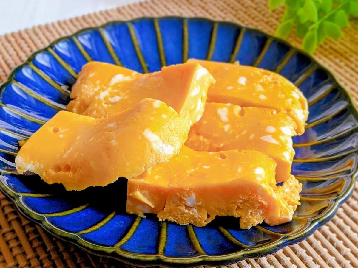 この時使った耐熱容器が大きかったため、少し薄めになってしまいました。できるなら、やや小さめの容器を使ったほうが厚みのある仕上がりになるでしょう。