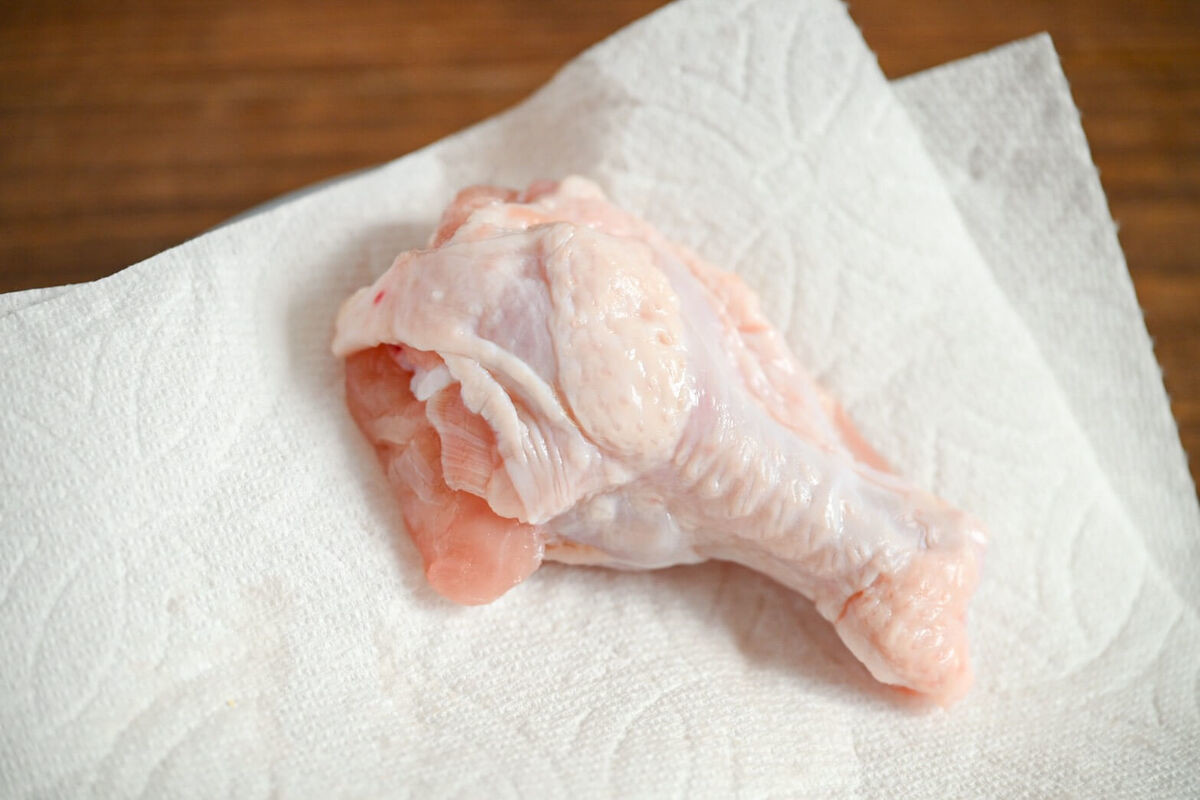 手羽元はよく水気をふきます。