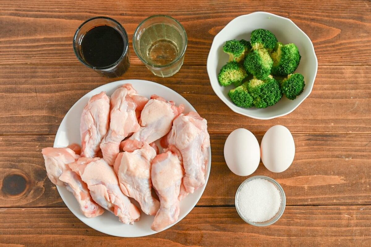 手羽元とゆで卵を一緒に器に盛り、ゆでたブロッコリーを添えて完成です!