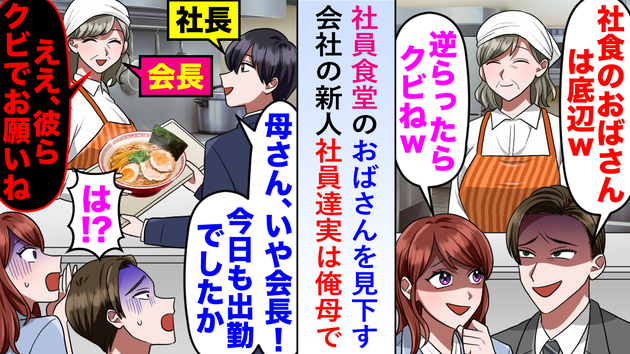 「社食のおばさんは底辺!逆らったらクビw」と見下すエリート新人に天罰!明かされた“彼女の正体”に顔面蒼白!