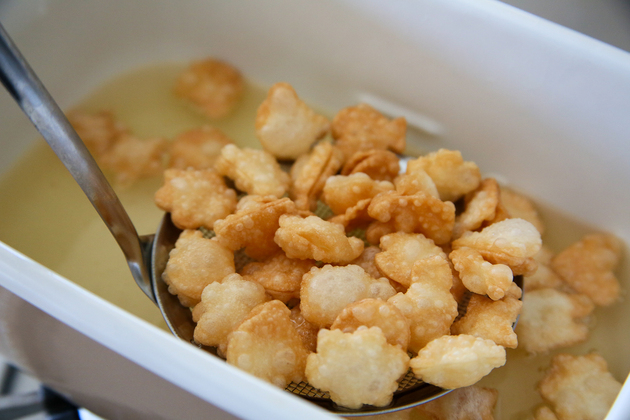 ※油に入れたら5秒ほどでぷわぁ〜っと浮いてきます。面白いので必見!