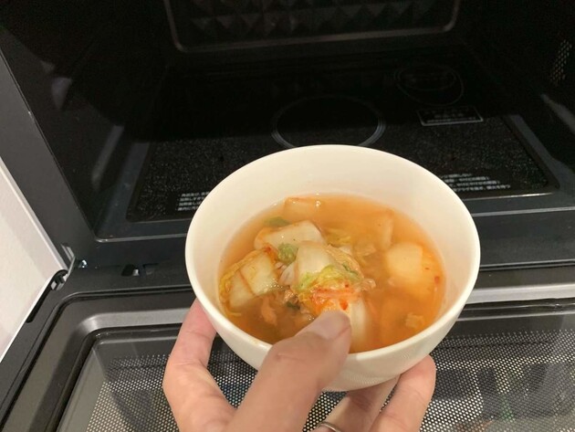 チゲスープのいい香りがします。電子レンジだけで作ったとは思えないくらい美味しそうです。