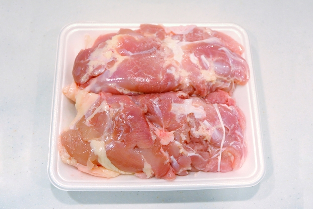 鶏もも肉は余分な脂を取り除き、水分をしっかり拭き取ります。