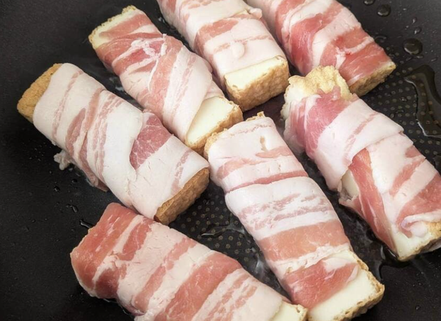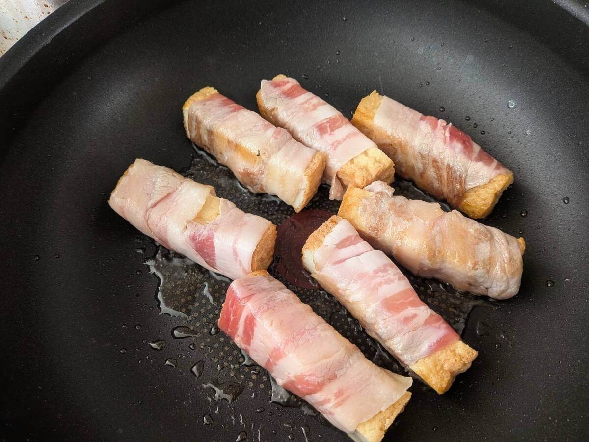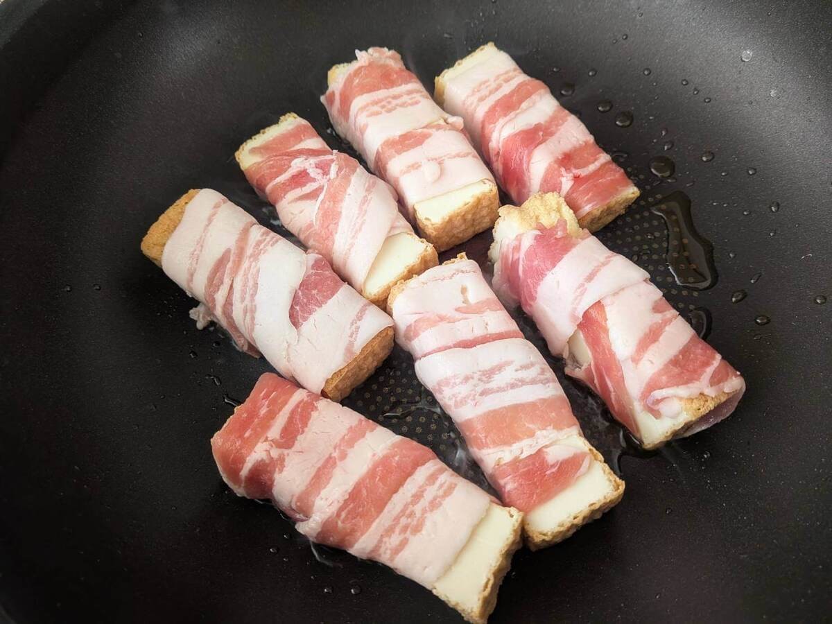 作り方②厚揚げに豚バラ肉を巻く
