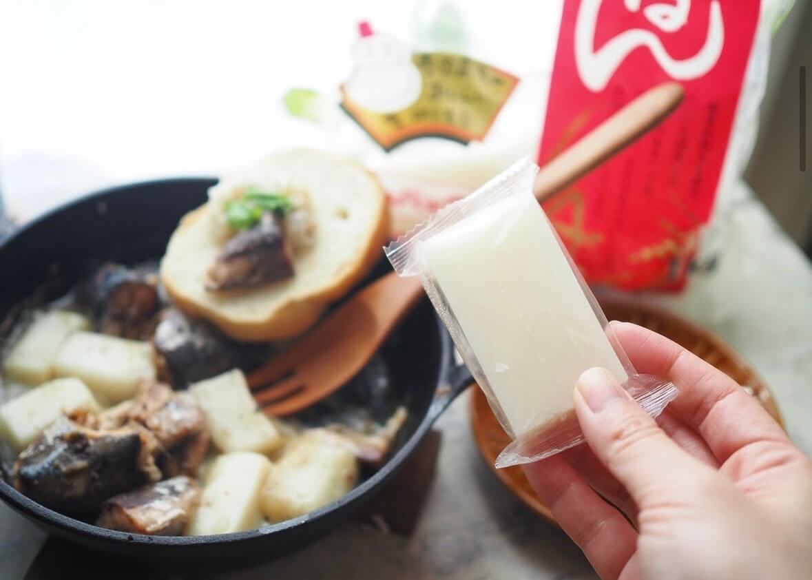 意外なアレンジとして、最近ハマっているのがお餅のアヒージョ。