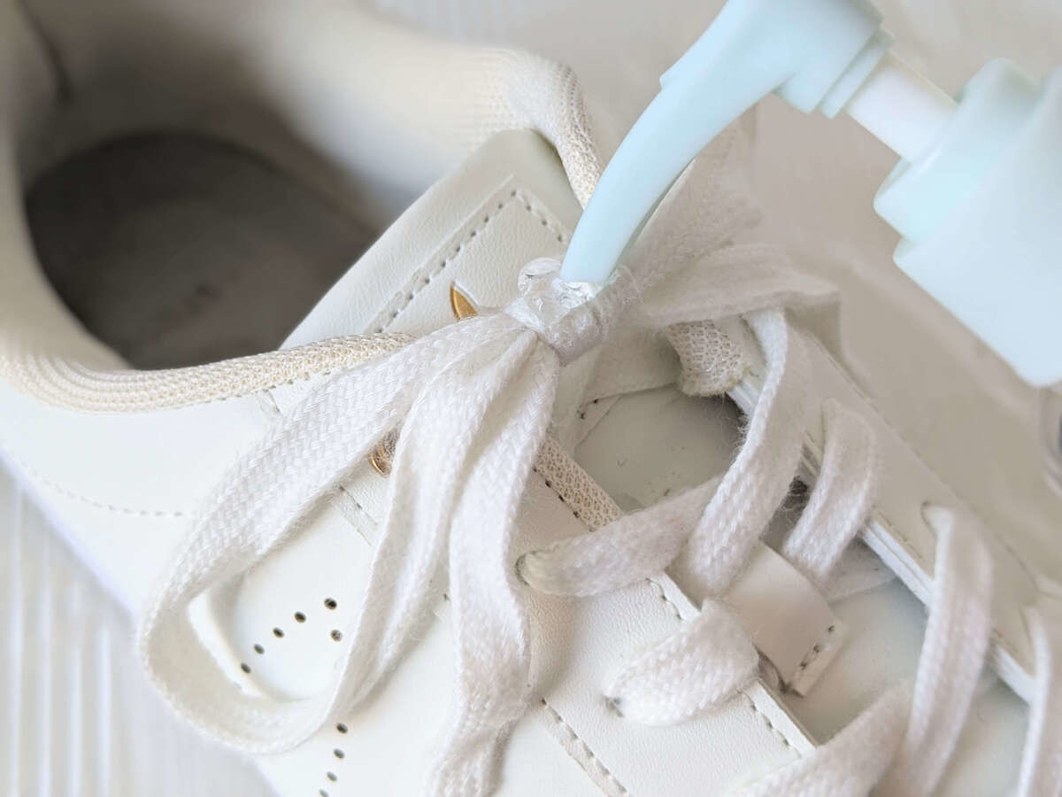 ご紹介した結び方でも解けにくくはなりますが、より強化するなら靴紐の結び目に、水を数滴たらしてみてください。