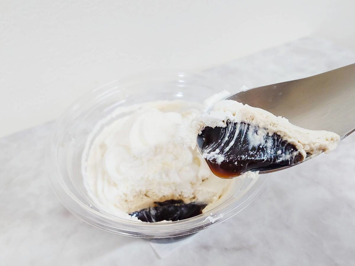 クリームの下には、濃いダークカラーのコーヒーゼリーがたっぷり。