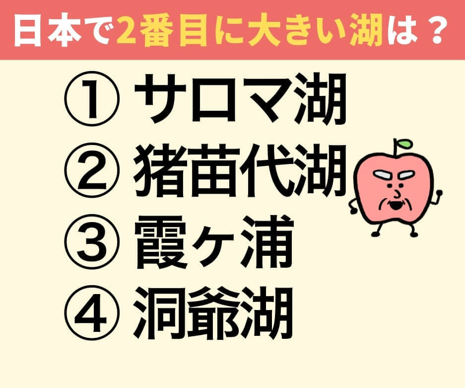 日本には、個性豊かな湖がたくさんあります。さて、琵琶湖に次いで面積が広い湖は、次のうちどれでしょうか?