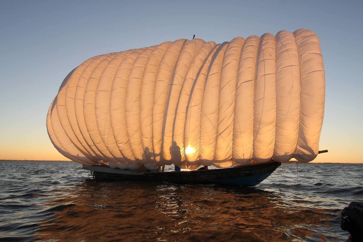 霞ヶ浦の風物詩といえば、真っ白い大きな帆を広げて風の力で網を引く「帆引き船(ほびきせん)」。明治時代に考案されたワカサギ漁のスタイルですが、現在は観光用としてその美しい姿を見ることができます。