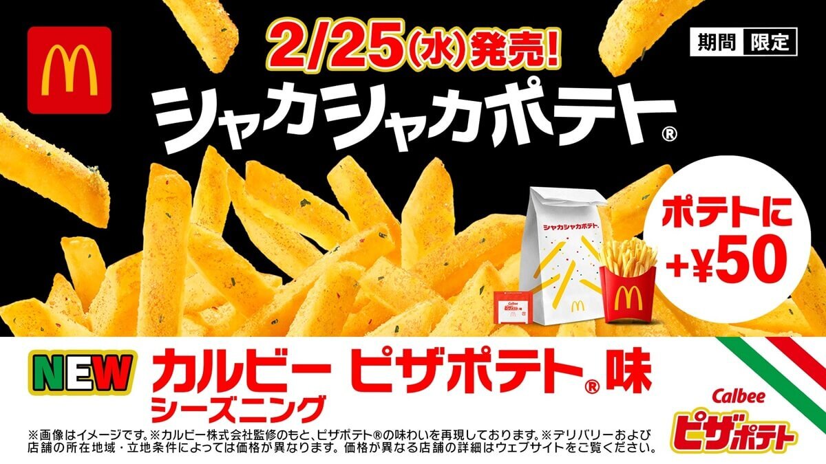 マクドナルドは、多くのお客様に愛されている「マックフライポテト」にさまざまな味つけをして楽しめる「シャカシャカポテト」が、カルビーの国民的スナック『ピザポテト』と初めてコラボした、「シャカシャカポテト カルビー ピザポテト味」を、2026年2月25日(水)より全国のマクドナルド店舗にて期間限定販売いたします。