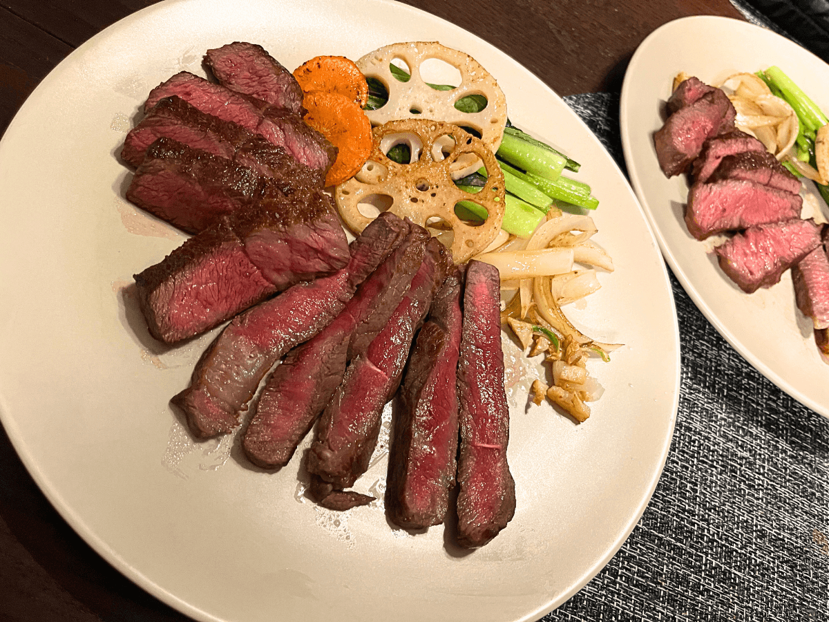 どちらのお肉も美しいサシが入っており、お店で食べたら高額になりそうなビジュアルです。