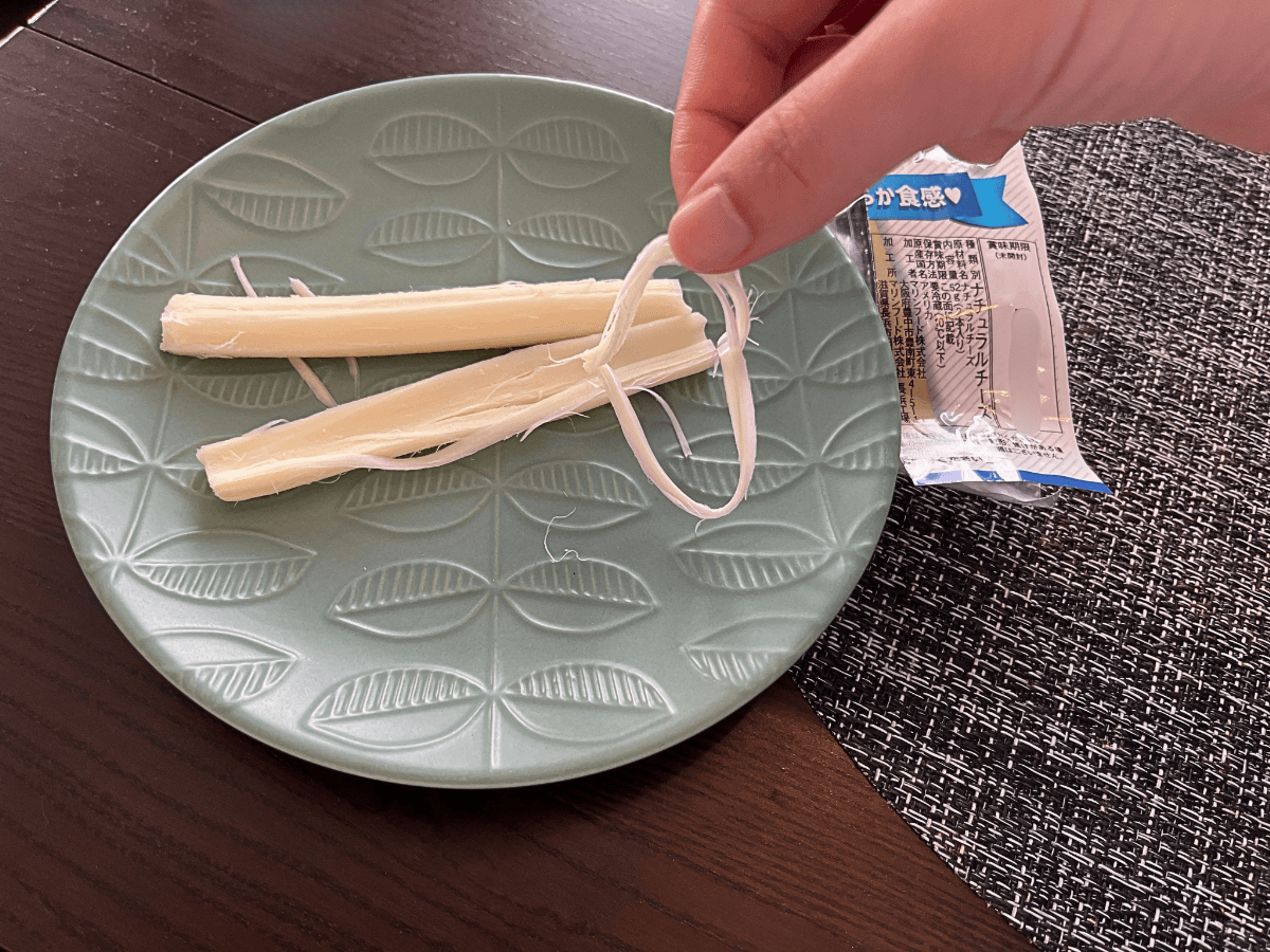 某有名メーカーのさけるチーズは「キュッキュッ」とした食感ですが、ロピアのさけるチーズは「しっとり、もちもち」食感。