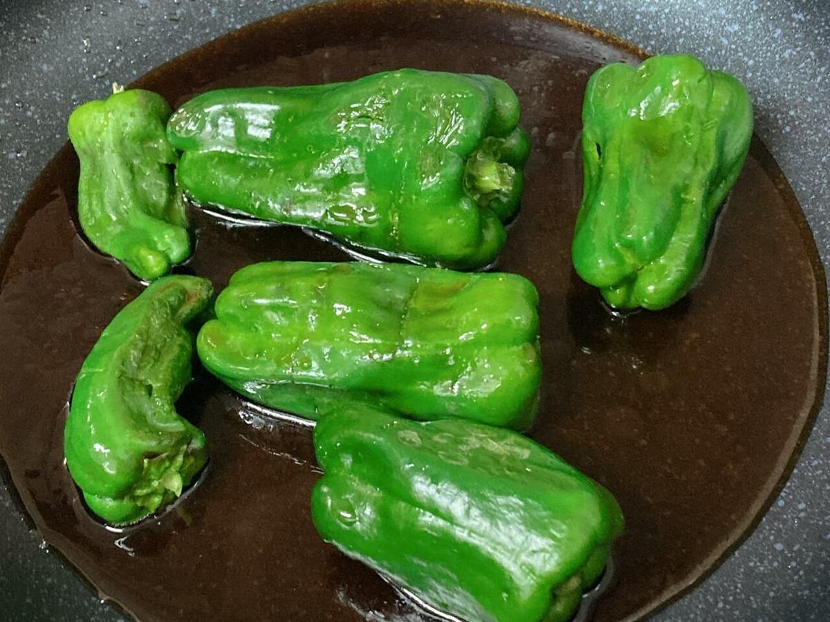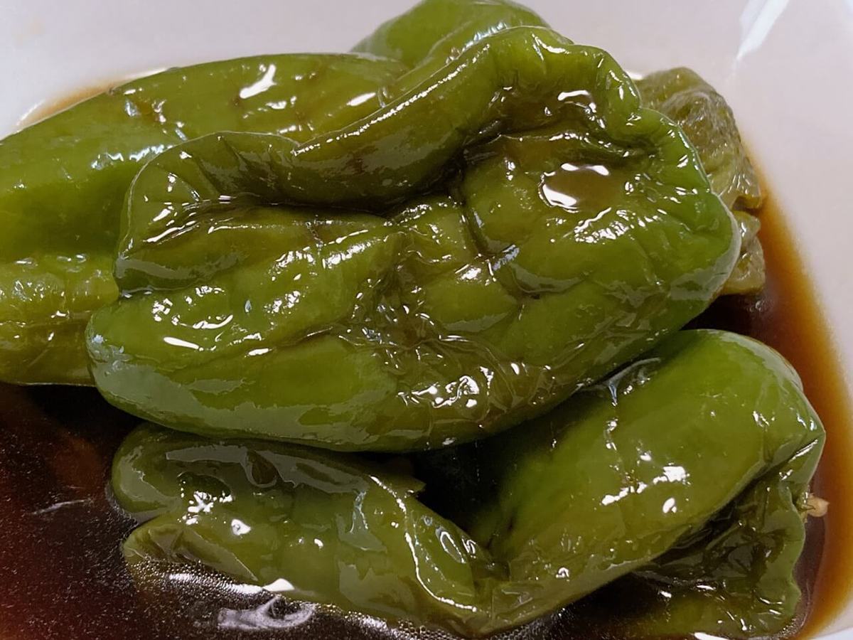 甘辛い濃いめのタレでじっくり煮込んだピーマンは、驚くほどトロトロに!