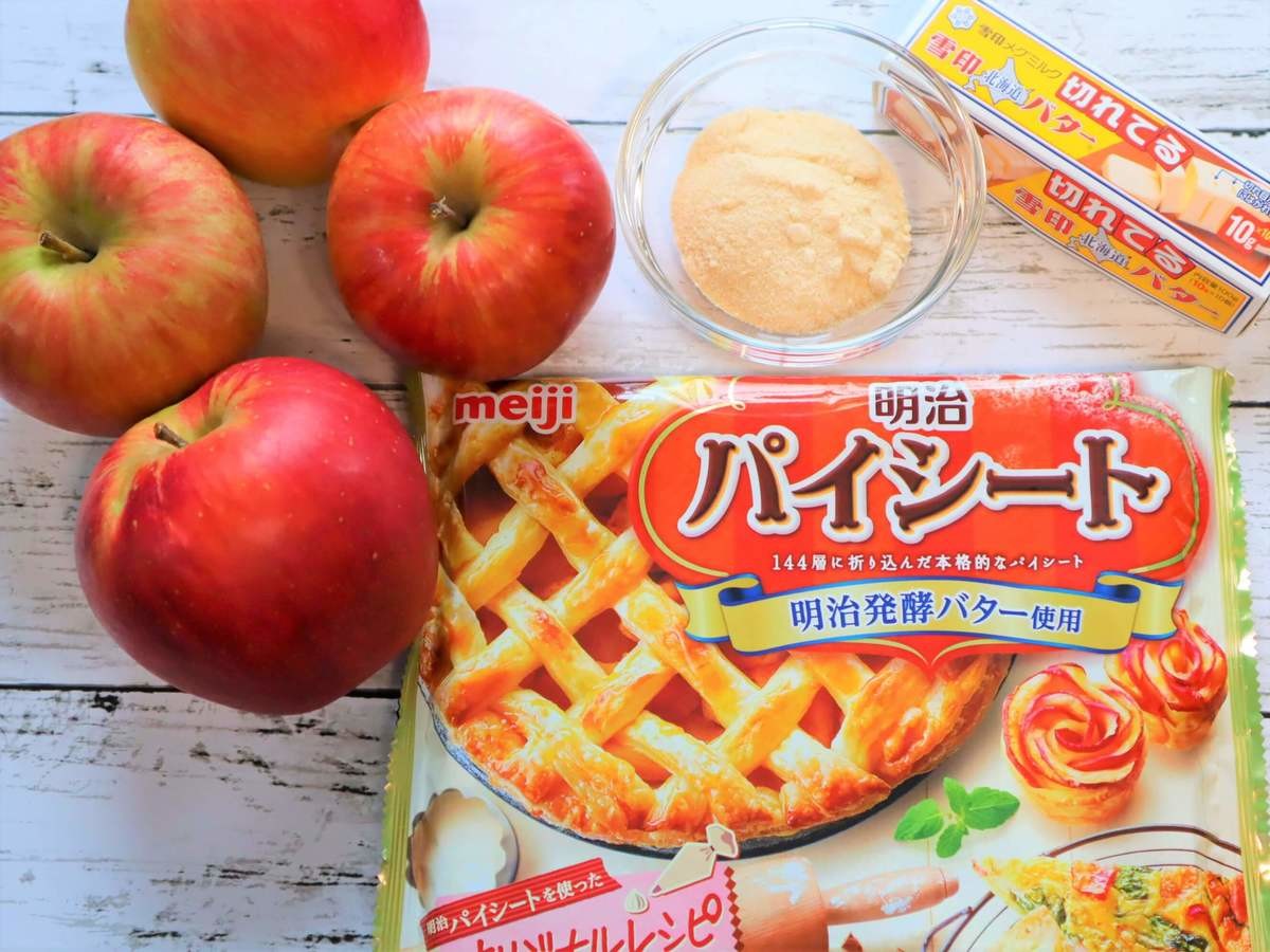 必要な材料はリンゴ、パイシート、砂糖、バターのたった4つだけ!