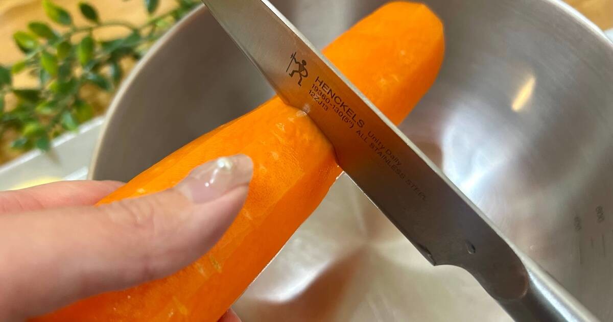 にんじんが小さくなってくると、ピーラーを使うのも大変ですよね……。残った部分は保存して、他の料理に活用するか包丁で切りましょう♪