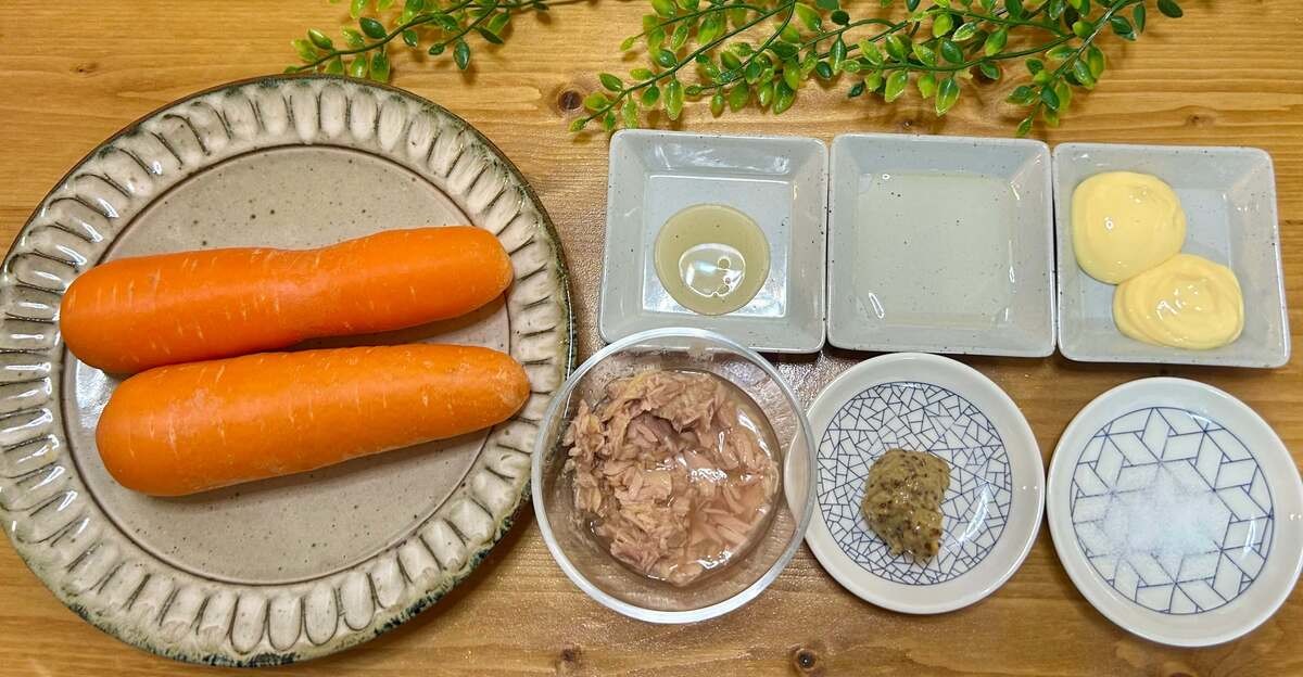 ツナ缶や調味料も使っていますが、主役はやっぱりにんじん。