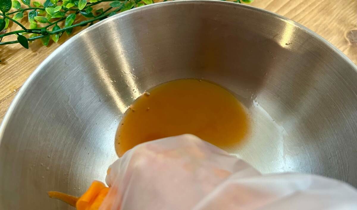 ピーラーで削ったにんじんは、塩もみして5〜10分放置します。