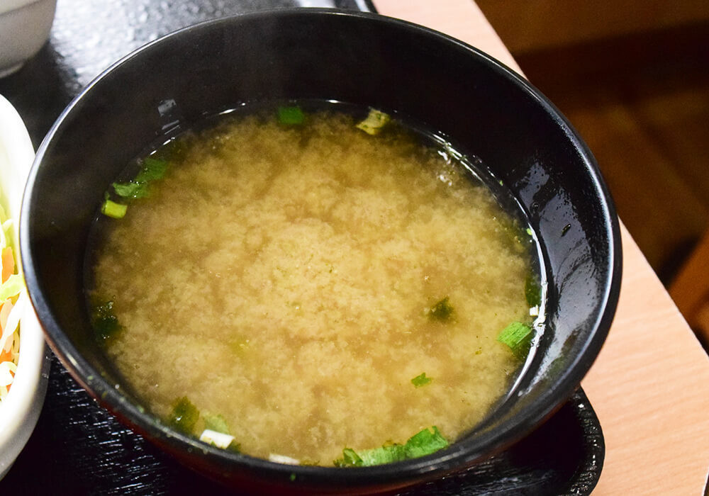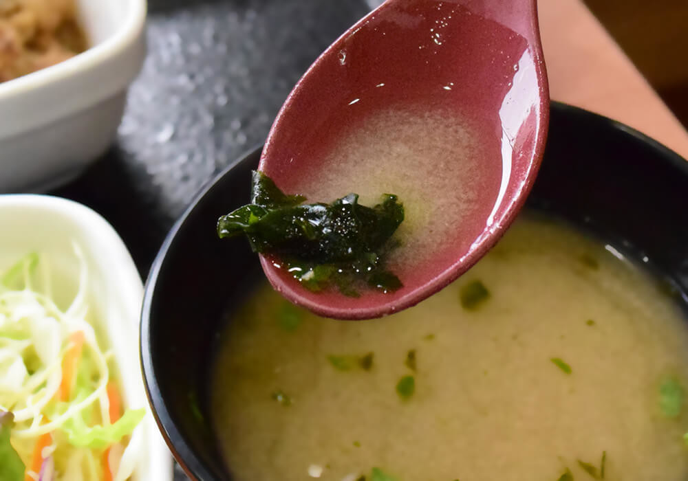 吉野家モーニングのみそ汁は、具材こそわかめとねぎのみとシンプルですが、磯のり(味噌汁用の乾燥海苔)も入っています。味わい自体は他の飲食チェーン店と同様にやさしいものの、磯のりの風味が加わることで、ひと味違った印象に仕上がっています。