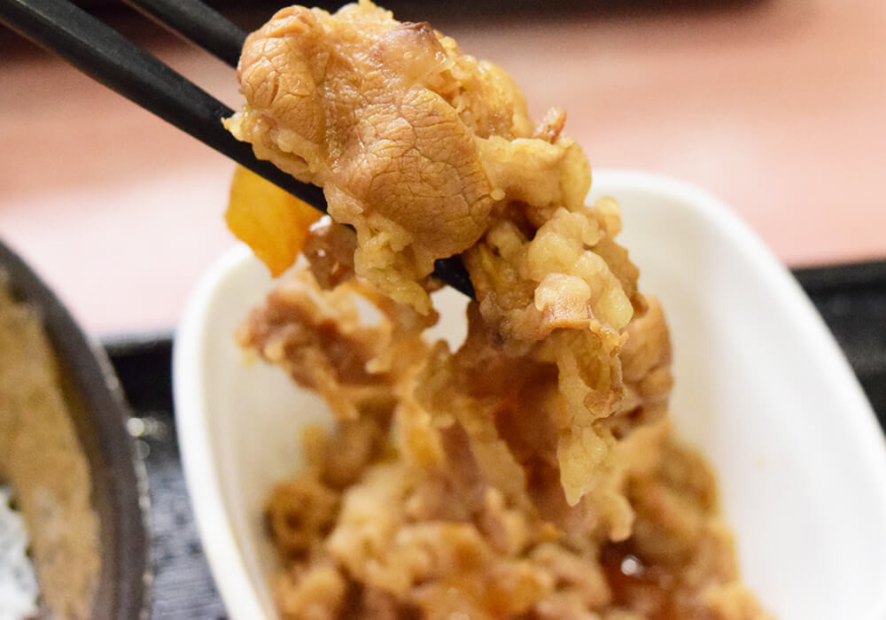 モーニングメニューには「牛小鉢」が付いていますが、味付けは吉野家の牛丼と同系統の醤油ベース。ごはんが進む、安定感のある味わいに仕上がっています。つゆがないため物足りなさを感じるかと思いきや、実際に食べてみると、そんな心配は不要でした。